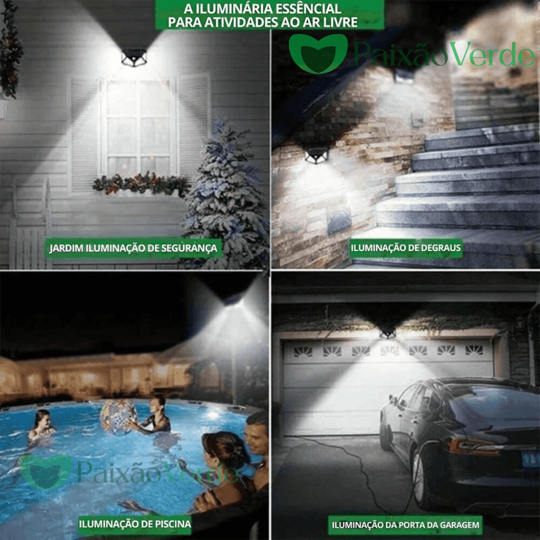 ✅ Iluminação Potente e Abrangente: Seus múltiplos painéis de LED oferecem uma luz forte e de grande alcance, iluminando jardins, garagens e corredores com eficiência.