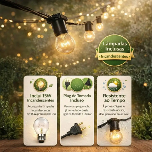 Varal de Lâmpadas Amarelas Para Area Externa - Paixão Verde